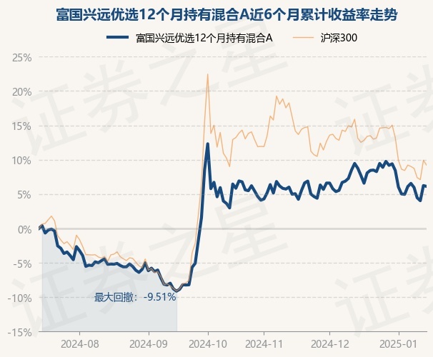 证券之星消息,1月15日,富国兴远优选12个月持有混合A最新单位净值为0.8971元,累计净值为0.8971元,较前一交易日下跌0.11%。历史数据显示该基金近1个月下跌2.44%,近3个月上涨2.05%,近6个月上涨6.12%,近1年上涨15.71%。该基金近6个月的累计收益率走势如下图: