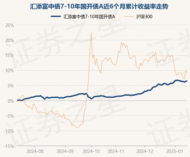 证券之星消息,1月15日,汇添富中债7-10年国开债A最新单位净值为1.2568元,累计净值为1.2628元,较前一交易日上涨0.06%。历史数据显示该基金近1个月上涨1.41%,近3个月上涨4.92%,近6个月上涨6.42%,近1年上涨11.36%。该基金近6个月的累计收益率走势如下图: