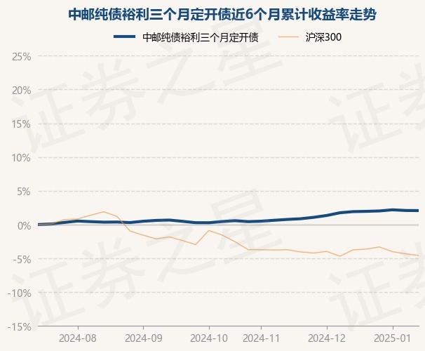 证券之星消息,1月15日,中邮纯债裕利三个月定开债最新单位净值为1.0264元,累计净值为1.2114元,较前一交易日下跌0.02%。历史数据显示该基金近1个月上涨0.31%,近3个月上涨1.54%,近6个月上涨1.99%,近1年上涨4.45%。该基金近6个月的累计收益率走势如下图: