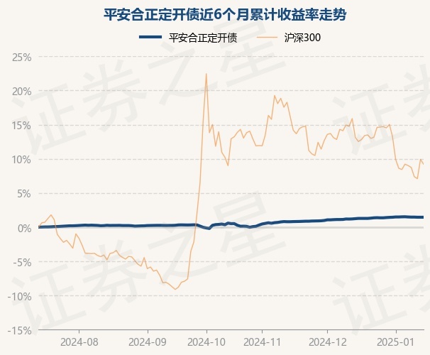 证券之星消息,1月15日,平安合正定开债最新单位净值为1.0624元,累计净值为1.3274元,较前一交易日上涨0.0%。历史数据显示该基金近1个月上涨0.21%,近3个月上涨0.99%,近6个月上涨1.45%,近1年上涨4.56%。该基金近6个月的累计收益率走势如下图:
