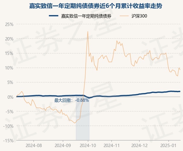 证券之星消息,1月15日,嘉实致信一年定期纯债债券最新单位净值为1.0178元,累计净值为1.1913元,较前一交易日上涨0.01%。历史数据显示该基金近1个月上涨0.4%,近3个月上涨1.74%,近6个月上涨1.79%,近1年上涨4.32%。该基金近6个月的累计收益率走势如下图: