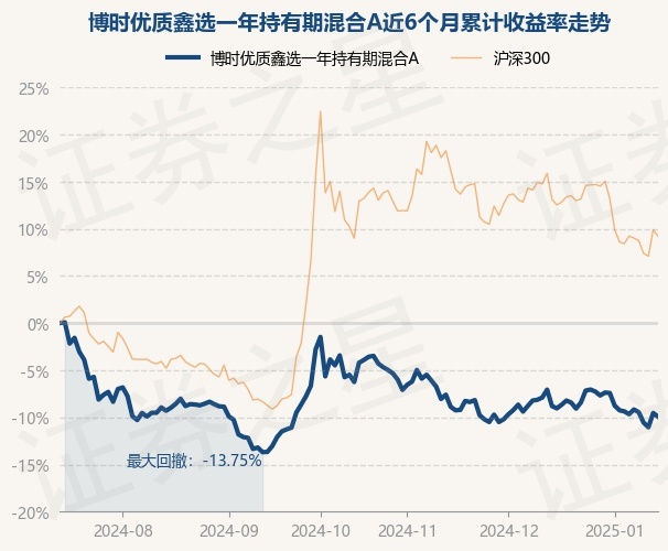 证券之星消息,1月15日,博时优质鑫选一年持有期混合A最新单位净值为0.7586元,累计净值为0.7586元,较前一交易日下跌0.45%。历史数据显示该基金近1个月下跌1.25%,近3个月下跌4.45%,近6个月下跌9.94%,近1年上涨7.85%。该基金近6个月的累计收益率走势如下图: