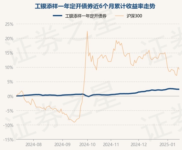 证券之星消息,1月15日,工银添祥一年定开债券最新单位净值为1.2937元,累计净值为1.2937元,较前一交易日下跌0.02%。历史数据显示该基金近1个月上涨0.38%,近3个月上涨1.89%,近6个月上涨2.32%,近1年上涨5.13%。该基金近6个月的累计收益率走势如下图: