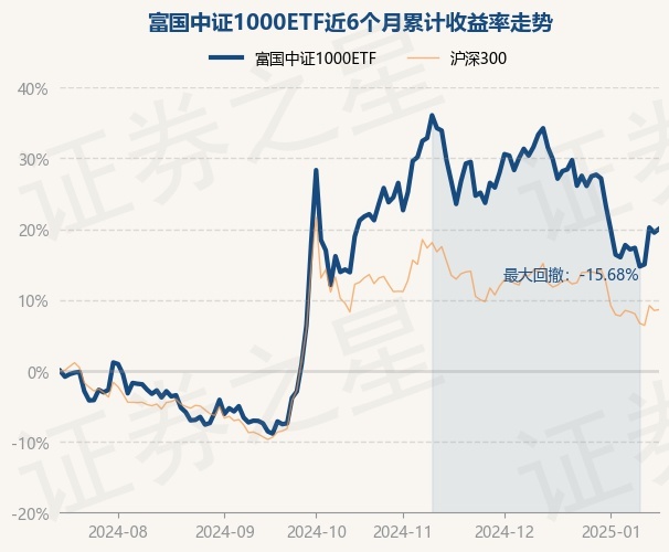证券之星消息,1月16日,富国中证1000ETF最新单位净值为2.3564元,累计净值为0.8296元,较前一交易日上涨0.44%。历史数据显示该基金近1个月下跌7.57%,近3个月上涨5.02%,近6个月上涨20.05%,近1年上涨5.78%。该基金近6个月的累计收益率走势如下图: