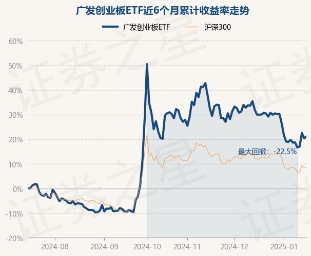 证券之星消息,1月16日,广发创业板ETF最新单位净值为1.2287元,累计净值为1.2287元,较前一交易日上涨0.66%。历史数据显示该基金近1个月下跌6.84%,近3个月上涨0.49%,近6个月上涨21.09%,近1年上涨18.44%。该基金近6个月的累计收益率走势如下图: