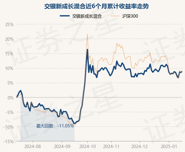 证券之星消息,1月16日,交银新成长混合最新单位净值为3.177元,累计净值为3.577元,较前一交易日上涨0.28%。历史数据显示该基金近1个月上涨0.22%,近3个月上涨0.83%,近6个月上涨8.8%,近1年上涨3.52%。该基金近6个月的累计收益率走势如下图: