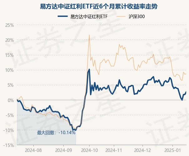 证券之星消息,1月16日,易方达中证红利ETF最新单位净值为1.3244元,累计净值为1.5954元,较前一交易日上涨0.81%。历史数据显示该基金近1个月下跌3.52%,近3个月下跌2.16%,近6个月上涨2.56%,近1年上涨10.96%。该基金近6个月的累计收益率走势如下图: