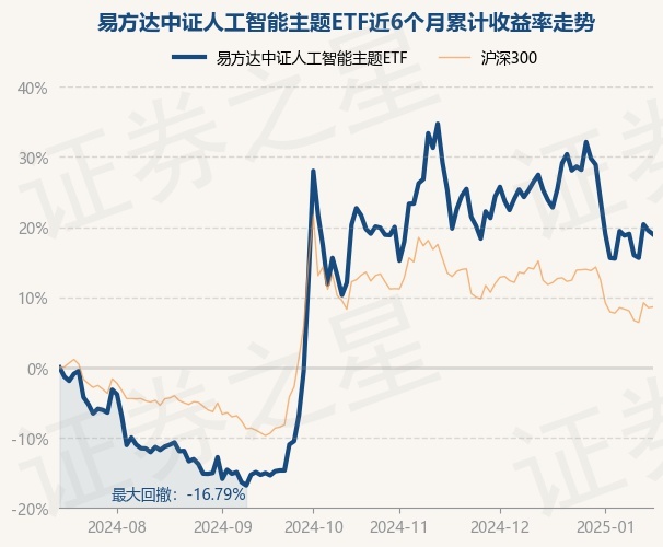 证券之星消息,1月16日,易方达中证人工智能主题ETF最新单位净值为0.8722元,累计净值为0.8722元,较前一交易日下跌0.45%。历史数据显示该基金近1个月下跌3.94%,近3个月上涨7.84%,近6个月上涨18.97%,近1年上涨33.02%。该基金近6个月的累计收益率走势如下图: