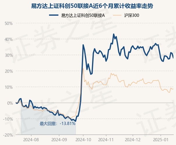 证券之星消息,1月16日,易方达上证科创50联接A最新单位净值为0.7484元,累计净值为0.7484元,较前一交易日下跌2.05%。历史数据显示该基金近1个月下跌1.81%,近3个月上涨8.75%,近6个月上涨28.19%,近1年上涨21.22%。该基金近6个月的累计收益率走势如下图: