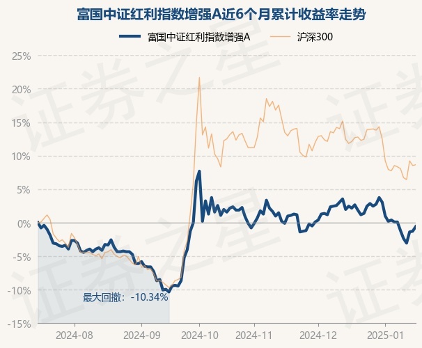 证券之星消息,1月16日,富国中证红利指数增强A最新单位净值为1.009元,累计净值为3.175元,较前一交易日上涨0.7%。历史数据显示该基金近1个月下跌2.98%,近3个月下跌3.07%,近6个月下跌0.59%,近1年上涨5.99%。该基金近6个月的累计收益率走势如下图: