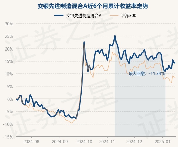证券之星消息,1月16日,交银先进制造混合A最新单位净值为3.6027元,累计净值为5.0537元,较前一交易日下跌0.08%。历史数据显示该基金近1个月下跌1.6%,近3个月上涨2.31%,近6个月上涨14.22%,近1年上涨10.29%。该基金近6个月的累计收益率走势如下图: