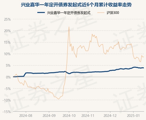兴业嘉华一年定开债券发起式为债券型-长债基金,根据最新一期基金季报显示,该基金资产配置:无股票类资产,债券占净值比109.02%,现金占净值比0.09%。