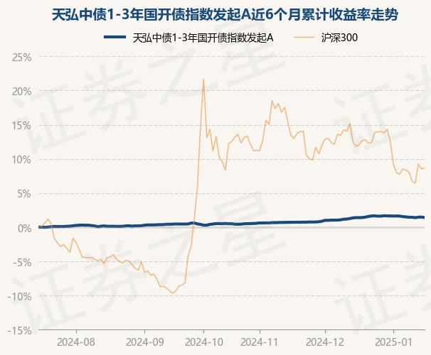 证券之星消息,1月16日,天弘中债1-3年国开债指数发起A最新单位净值为1.0199元,累计净值为1.1291元,较前一交易日下跌0.07%。历史数据显示该基金近1个月上涨0.12%,近3个月上涨0.9%,近6个月上涨1.41%,近1年上涨3.77%。该基金近6个月的累计收益率走势如下图: