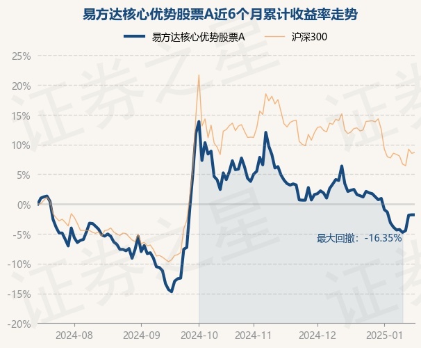 证券之星消息,1月16日,易方达核心优势股票A最新单位净值为0.664元,累计净值为0.664元,较前一交易日上涨0.0%。历史数据显示该基金近1个月下跌3.84%,近3个月下跌5.64%,近6个月下跌1.8%,近1年上涨4.48%。该基金近6个月的累计收益率走势如下图: