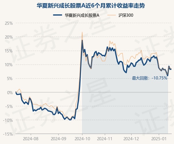 证券之星消息,1月16日,华夏新兴成长股票A最新单位净值为0.7062元,累计净值为0.7062元,较前一交易日上涨0.01%。历史数据显示该基金近1个月下跌1.34%,近3个月下跌1.02%,近6个月上涨8.26%,近1年上涨17.78%。该基金近6个月的累计收益率走势如下图: