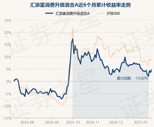 证券之星消息,1月16日,汇添富消费升级混合A最新单位净值为1.5706元,累计净值为1.5706元,较前一交易日上涨1.11%。历史数据显示该基金近1个月下跌1.75%,近3个月下跌3.51%,近6个月上涨4.78%,近1年上涨6.17%。该基金近6个月的累计收益率走势如下图: