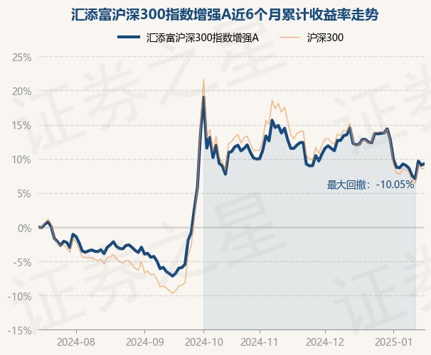 证券之星消息,1月16日,汇添富沪深300指数增强A最新单位净值为1.3142元,累计净值为1.5241元,较前一交易日上涨0.22%。历史数据显示该基金近1个月下跌2.45%,近3个月上涨0.31%,近6个月上涨9.3%,近1年上涨16.88%。该基金近6个月的累计收益率走势如下图:
