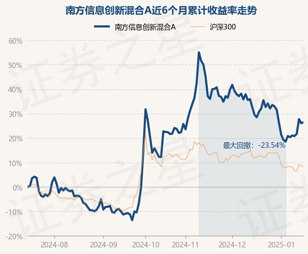证券之星消息,1月16日,南方信息创新混合A最新单位净值为1.696元,累计净值为1.696元,较前一交易日上涨0.32%。历史数据显示该基金近1个月下跌2.38%,近3个月上涨12.59%,近6个月上涨26.46%,近1年上涨20.69%。该基金近6个月的累计收益率走势如下图: