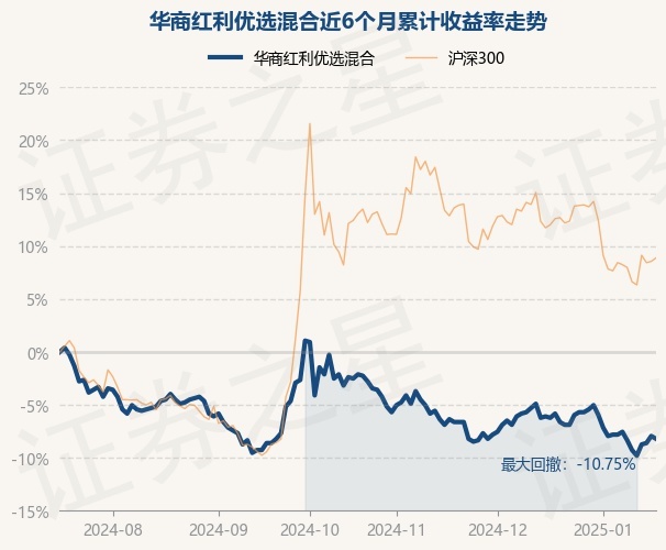 证券之星消息,1月17日,华商红利优选混合最新单位净值为0.693元,累计净值为2.25元,较前一交易日下跌0.29%。历史数据显示该基金近1个月下跌2.12%,近3个月下跌5.2%,近6个月下跌8.21%,近1年下跌0.57%。该基金近6个月的累计收益率走势如下图: