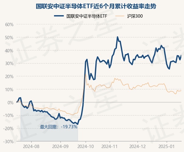 证券之星消息,1月17日,国联安中证半导体ETF最新单位净值为1.011元,累计净值为2.022元,较前一交易日上涨2.42%。历史数据显示该基金近1个月上涨4.29%,近3个月上涨15.37%,近6个月上涨35.78%,近1年上涨44.88%。该基金近6个月的累计收益率走势如下图:
