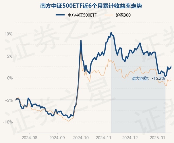 证券之星消息,1月17日,南方中证500ETF最新单位净值为5.5837元,累计净值为1.85元,较前一交易日上涨0.77%。历史数据显示该基金近1个月下跌4.47%,近3个月上涨3.02%,近6个月上涨15.16%,近1年上涨12.0%。该基金近6个月的累计收益率走势如下图: