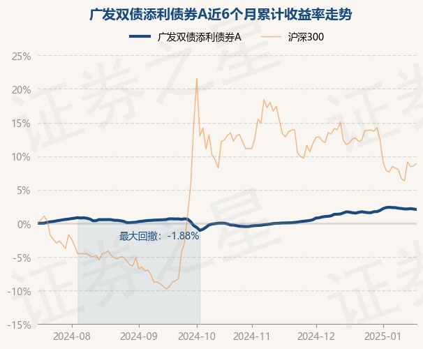 证券之星消息,1月17日,广发双债添利债券A最新单位净值为1.2324元,累计净值为1.6649元,较前一交易日下跌0.06%。历史数据显示该基金近1个月上涨0.4%,近3个月上涨2.05%,近6个月上涨2.06%,近1年上涨6.04%。该基金近6个月的累计收益率走势如下图: