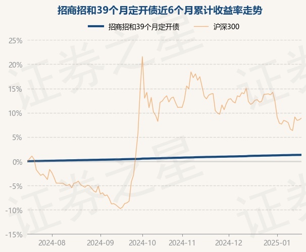 证券之星消息,1月17日,招商招和39个月定开债最新单位净值为1.0032元,累计净值为1.1424元,较前一交易日上涨0.01%。历史数据显示该基金近1个月上涨0.9%,近3个月上涨0.71%,近6个月上涨1.31%,近1年上涨2.85%。该基金近6个月的累计收益率走势如下图: