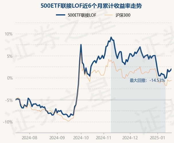 证券之星消息,1月17日,500ETF联接LOF最新单位净值为1.5651元,累计净值为1.6651元,较前一交易日上涨0.73%。历史数据显示该基金近1个月下跌4.27%,近3个月上涨2.9%,近6个月上涨13.98%,近1年上涨11.09%。该基金近6个月的累计收益率走势如下图: