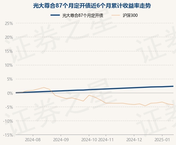 证券之星消息,1月17日,光大尊合87个月定开债最新单位净值为1.0545元,累计净值为1.1906元,较前一交易日上涨0.09%。历史数据显示该基金近1个月上涨0.43%,近3个月上涨1.21%,近6个月上涨2.33%,近1年上涨4.54%。该基金近6个月的累计收益率走势如下图: