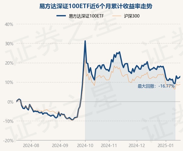 证券之星消息,1月17日,易方达深证100ETF最新单位净值为2.6962元,累计净值为5.2339元,较前一交易日上涨0.58%。历史数据显示该基金近1个月下跌3.23%,近3个月上涨1.58%,近6个月上涨12.88%,近1年上涨19.94%。该基金近6个月的累计收益率走势如下图: