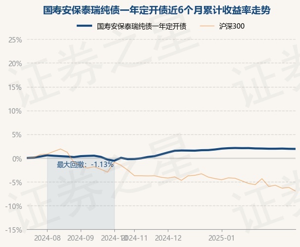证券之星消息,1月17日,国寿安保泰瑞纯债一年定开债最新单位净值为1.0141元,累计净值为1.2349元,较前一交易日下跌0.02%。历史数据显示该基金近1个月上涨0.39%,近3个月上涨2.48%,近6个月上涨1.81%,近1年上涨4.78%。该基金近6个月的累计收益率走势如下图: