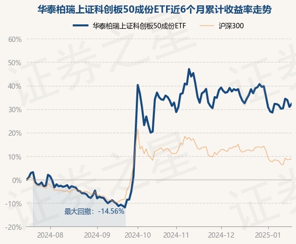 证券之星消息,1月17日,华泰柏瑞上证科创板50成份ETF最新单位净值为0.9959元,累计净值为0.6954元,较前一交易日上涨0.98%。历史数据显示该基金近1个月下跌0.17%,近3个月上涨9.79%,近6个月上涨32.26%,近1年上涨27.19%。该基金近6个月的累计收益率走势如下图: