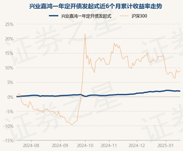 证券之星消息,1月17日,兴业嘉鸿一年定开债发起式最新单位净值为1.0754元,累计净值为1.1169元,较前一交易日下跌0.03%。历史数据显示该基金近1个月上涨0.19%,近3个月上涨1.35%,近6个月上涨1.89%,近1年上涨7.47%。该基金近6个月的累计收益率走势如下图: