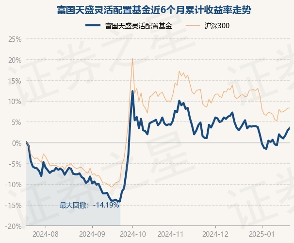 证券之星消息,1月20日,富国天盛灵活配置基金最新单位净值为0.942元,累计净值为2.465元,较前一交易日上涨1.07%。历史数据显示该基金近1个月下跌2.38%,近3个月下跌1.67%,近6个月上涨2.84%,近1年上涨4.67%。该基金近6个月的累计收益率走势如下图:
