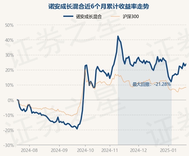 证券之星消息,1月20日,诺安成长混合最新单位净值为1.4元,累计净值为1.845元,较前一交易日下跌1.48%。历史数据显示该基金近1个月下跌4.76%,近3个月上涨2.34%,近6个月上涨22.59%,近1年上涨28.68%。该基金近6个月的累计收益率走势如下图: