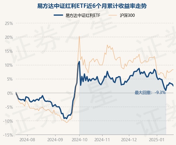 证券之星消息,1月20日,易方达中证红利ETF最新单位净值为1.3187元,累计净值为1.5897元,较前一交易日下跌0.15%。历史数据显示该基金近1个月下跌2.43%,近3个月上涨2.87%,近6个月上涨3.09%,近1年上涨13.44%。该基金近6个月的累计收益率走势如下图: