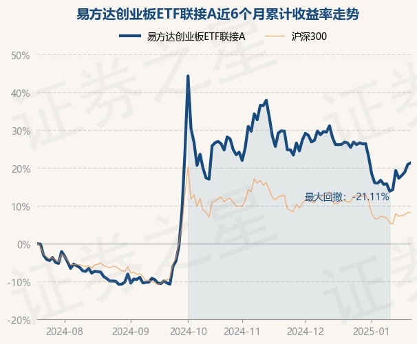证券之星消息,1月20日,易方达创业板ETF联接A最新单位净值为2.1606元,累计净值为2.1606元,较前一交易日上涨1.71%。历史数据显示该基金近1个月下跌4.5%,近3个月下跌3.9%,近6个月上涨20.95%,近1年上涨21.69%。该基金近6个月的累计收益率走势如下图: