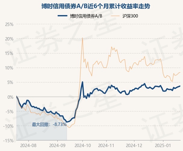 证券之星消息,1月20日,博时信用债券A/B最新单位净值为3.1435元,累计净值为3.2585元,较前一交易日上涨0.16%。历史数据显示该基金近1个月上涨0.83%,近3个月上涨1.56%,近6个月上涨3.48%,近1年上涨13.36%。该基金近6个月的累计收益率走势如下图: