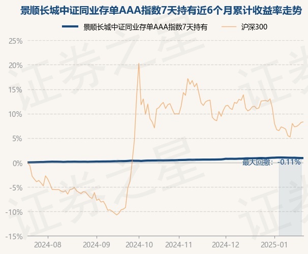 证券之星消息,1月20日,景顺长城中证同业存单AAA指数7天持有最新单位净值为1.0625元,累计净值为1.0625元,较前一交易日下跌0.02%。历史数据显示该基金近1个月上涨0.04%,近3个月上涨0.49%,近6个月上涨0.91%,近1年上涨2.15%。该基金近6个月的累计收益率走势如下图: