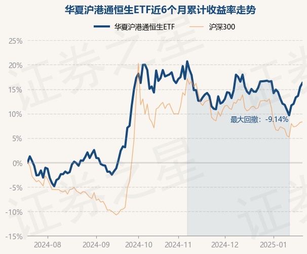 证券之星消息,1月20日,华夏沪港通恒生ETF最新单位净值为2.431元,累计净值为1.2621元,较前一交易日上涨1.61%。历史数据显示该基金近1个月上涨0.87%,近3个月下跌2.83%,近6个月上涨15.46%,近1年上涨36.43%。该基金近6个月的累计收益率走势如下图:
