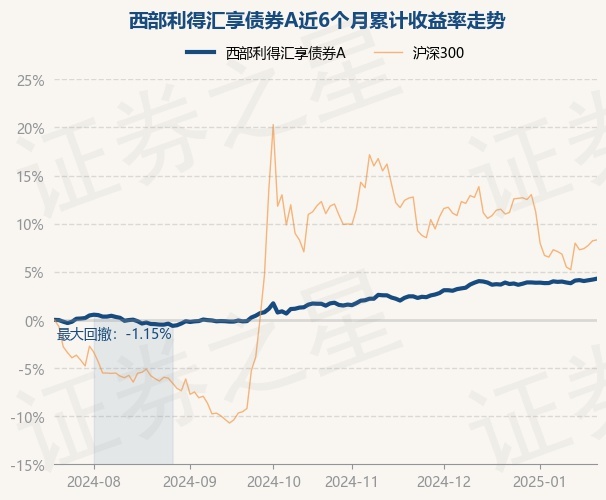 证券之星消息,1月20日,西部利得汇享债券A最新单位净值为1.3109元,累计净值为1.4773元,较前一交易日上涨0.07%。历史数据显示该基金近1个月上涨0.3%,近3个月上涨2.57%,近6个月上涨4.19%,近1年上涨6.84%。该基金近6个月的累计收益率走势如下图: