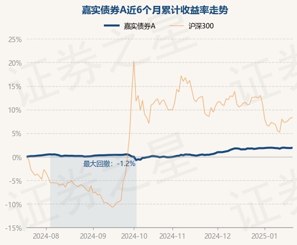 证券之星消息,1月20日,嘉实债券A最新单位净值为1.2153元,累计净值为2.5262元,较前一交易日下跌0.02%。历史数据显示该基金近1个月上涨0.07%,近3个月上涨1.74%,近6个月上涨1.83%,近1年上涨3.68%。该基金近6个月的累计收益率走势如下图: