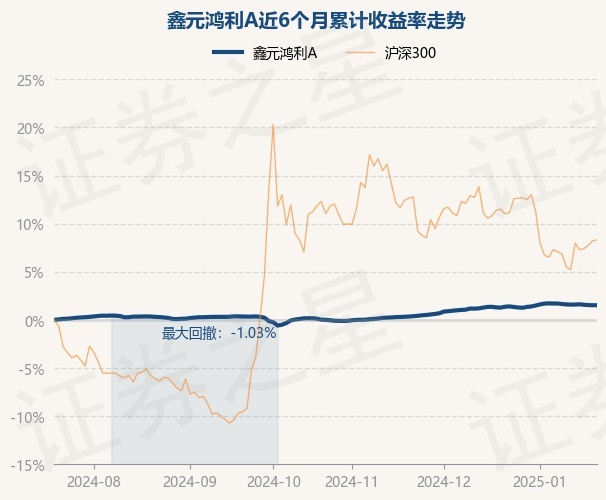 证券之星消息,1月21日,鑫元鸿利A最新单位净值为1.1273元,累计净值为1.5223元,较前一交易日上涨0.0%。历史数据显示该基金近1个月上涨0.15%,近3个月上涨1.35%,近6个月上涨1.52%,近1年上涨4.71%。该基金近6个月的累计收益率走势如下图: