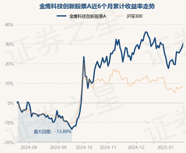 证券之星消息,1月21日,金鹰科技创新股票A最新单位净值为1.4698元,累计净值为1.8058元,较前一交易日上涨1.65%。历史数据显示该基金近1个月下跌2.15%,近3个月上涨9.17%,近6个月上涨30.21%,近1年上涨34.14%。该基金近6个月的累计收益率走势如下图: