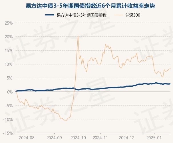 易方达中债3-5年期国债指数为指数型-固收基金,根据最新一期基金季报显示,该基金资产配置:无股票类资产,债券占净值比93.19%,现金占净值比3.78%。
