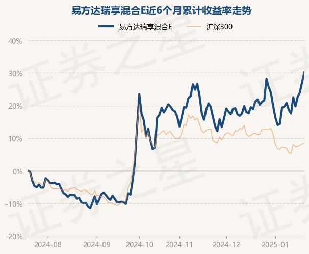 证券之星消息,1月21日,易方达瑞享混合E最新单位净值为2.6527元,累计净值为2.6527元,较前一交易日上涨2.27%。历史数据显示该基金近1个月上涨6.82%,近3个月上涨11.15%,近6个月上涨30.16%,近1年上涨25.01%。该基金近6个月的累计收益率走势如下图:
