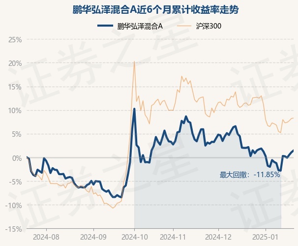 证券之星消息,1月21日,鹏华弘泽混合A最新单位净值为1.5286元,累计净值为1.5286元,较前一交易日上涨0.37%。历史数据显示该基金近1个月下跌0.71%,近3个月下跌0.93%,近6个月上涨1.45%,近1年上涨3.14%。该基金近6个月的累计收益率走势如下图: