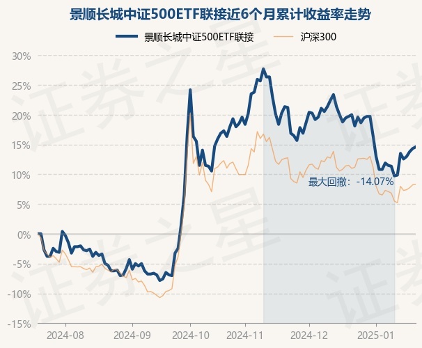 证券之星消息,1月21日,景顺长城中证500ETF联接最新单位净值为0.848元,累计净值为0.848元,较前一交易日上涨0.24%。历史数据显示该基金近1个月下跌4.5%,近3个月下跌1.17%,近6个月上涨14.59%,近1年上涨12.77%。该基金近6个月的累计收益率走势如下图: