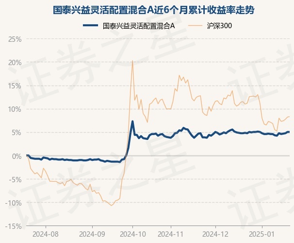 证券之星消息,1月21日,国泰兴益灵活配置混合A最新单位净值为1.192元,累计净值为1.427元,较前一交易日上涨0.0%。历史数据显示该基金近1个月上涨0.17%,近3个月上涨0.42%,近6个月上涨5.02%,近1年上涨5.21%。该基金近6个月的累计收益率走势如下图: