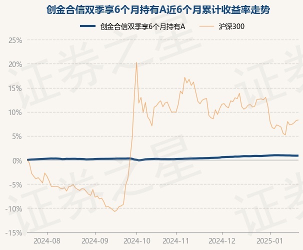 证券之星消息,1月21日,创金合信双季享6个月持有A最新单位净值为1.1628元,累计净值为1.1628元,较前一交易日上涨0.01%。历史数据显示该基金近1个月上涨0.09%,近3个月上涨0.68%,近6个月上涨0.89%,近1年上涨3.46%。该基金近6个月的累计收益率走势如下图: